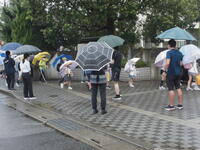 雨の中を登校してきた子どもたち。校門で教職員とあいさつをかわし校舎の中へ。教室に入ってからは担任による健康観察、読書、自主学習に取り組む子どもたち。