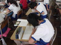 通常登校が再開されました。朝の時間は読書。担任も一緒に読書をしています。