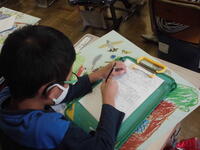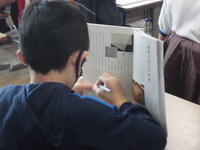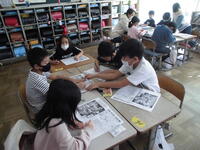作品の鑑賞カード作成、国語の読み取りを行う子どもたち