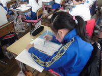 作品の鑑賞カード作成、国語の読み取りを行う子どもたち