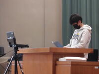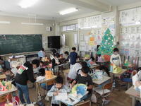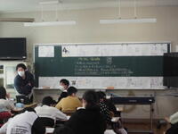 授業の様子です。給食の時間に、卒業生と在校生の代表によるお別れの会(引き継ぎ)をリモートで実施しました。。