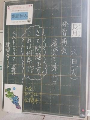 【4年生】毎日、県名クイズを出して子どもたちを迎えています。