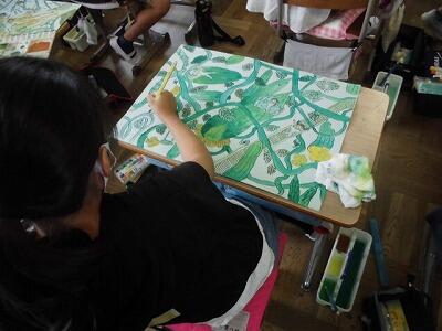 【3年生 図工】「ひまわりランドへようこそ」を題材とした絵画を描いています。