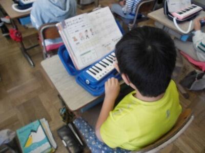 【2年生 音楽】カスタネットのリズムに合わせながら、鍵盤ハーモニカで「山のポルカ」を演奏しました。