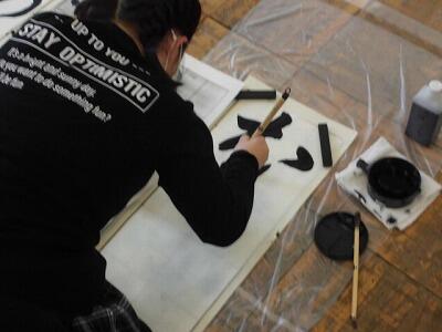 【さくら学級】画仙紙に書くことに慣れていませんが、一生懸命練習をしています。