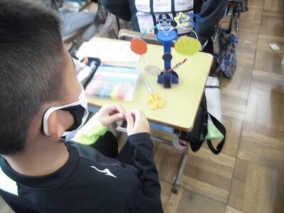 【5年生 理科】電流の接触を確かめながら車を作りました。