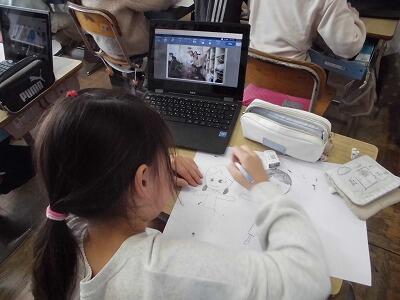 3年生が図工「未来にタイムスリップ」で「将来の夢」について描いていました。