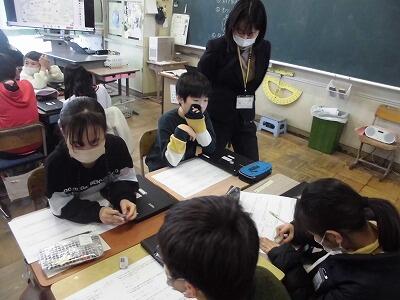 4年生が、点字で名前や学校名、好きな食べ物などを打つことに挑戦しました。