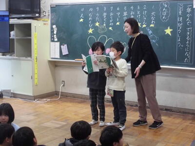 1年生は、学習発表会を行い、自分ができるようになったことを発表しました。