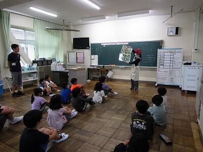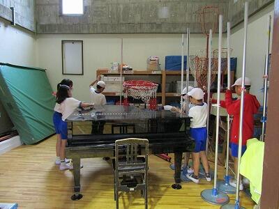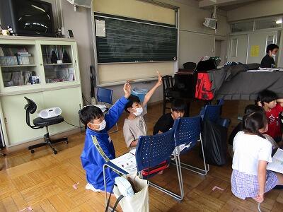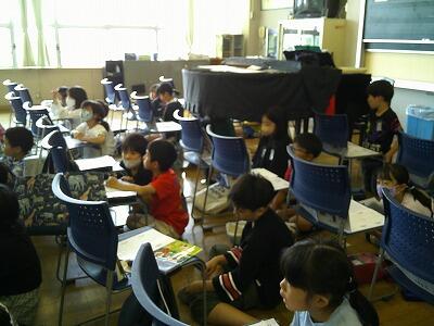 答えは後ろの奏者の弦楽器と取り替えるです。こどもたちは教師の話に耳を傾けて聞いていました。