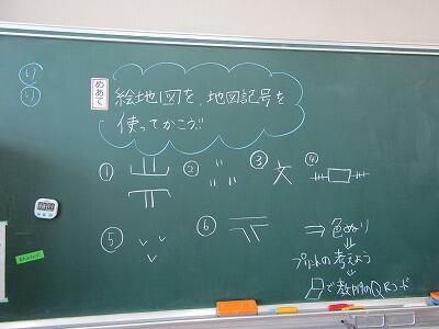 3年生は社会科で地図記号について学習しています。今日は実際に地域を歩いて地図に地図記号を入れました。