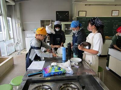 5年生では、初めての調理実習を行いました。