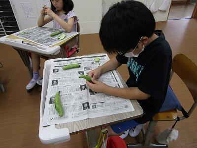 5月9日(木) 3年生グリンピースさやむき