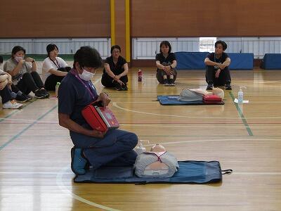 胸骨圧迫による心臓マッサージやAEDの使い方をはじめ、事故発生時の一連の流れの確認と訓練を行いました。