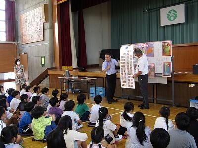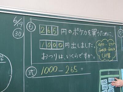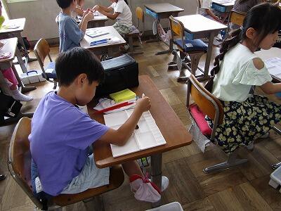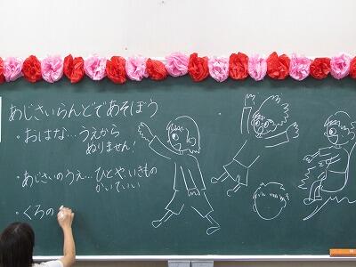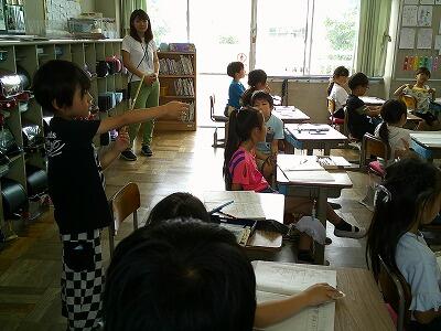 大きなかぶの学習に入りました。「かきかたくん」を使って鉛筆を正しく持って書く練習をしていました。これまでの持ち方とちがう感触に、戸惑っている子もすくなくありません。後半は、おじいさんが大きなかぶを抜くシーンを体で表現しながら音読を行いました。