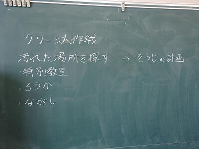 「もくもく・てきぱき・すみずみ」清掃をしたキラリと輝く場所を美化委員会が探しに行き、見つけた場所と担当クラスを6月17日(月)の給食の時間に発表します。