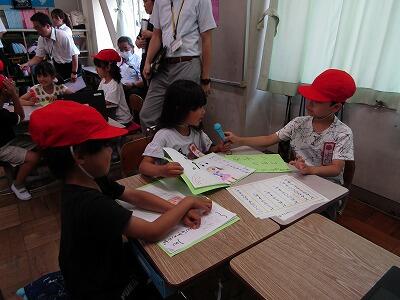 6年生では、1年生を招待して、お祭りを開催しました。この日に向けて射的やビンゴ、作品作りなどの準備を進めてきました。招待された1年生の子どもたちは大喜びでした。6年生と1年生の交流も深まりました。