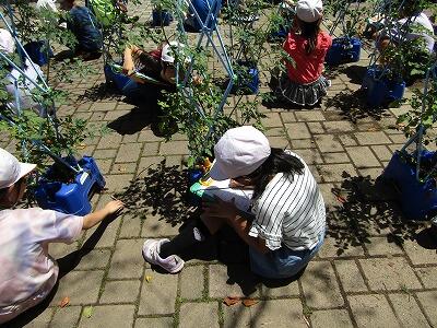 ミニトマトとホウセンカの観察を行いました。ミニトマトはまだ緑色をしていますが、実がなり始めていました。赤くなるのを楽しみにしているようです。
