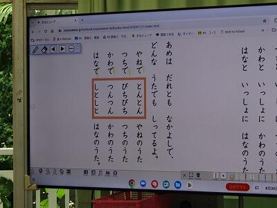 詩の音読です。雨の様子を浮かべながら、リズムに乗って小気味よく音読を楽しんでいました。