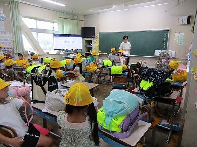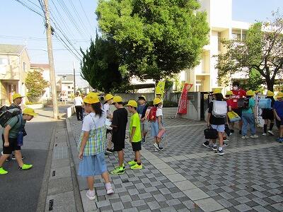 火災の発生場所によって避難経路はかわります。今日は給食室を出火元として避難しました。