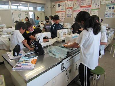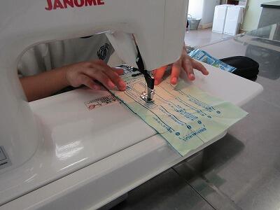 これまで、ミシンの使い方を練習してきましたが、いよいよエプロンづくりが始まりました。