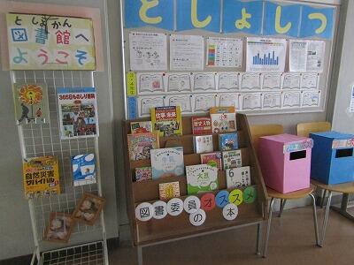 こどもたちが探しやすいように分類したり、興味を持ってもらえるように本の紹介をしたりしています。