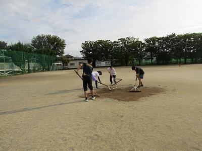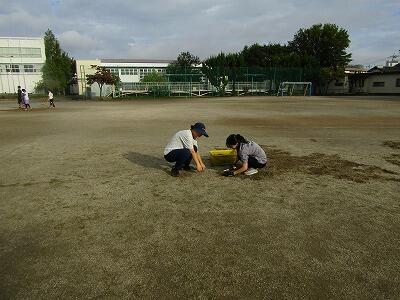 1時間目の運動会練習に向けて、校庭整備を行いました。