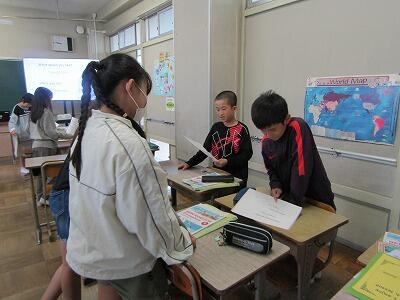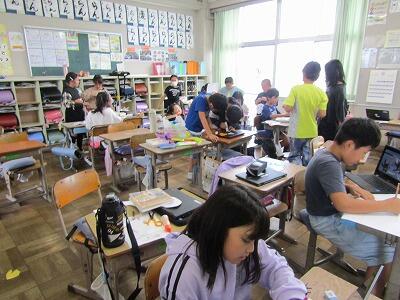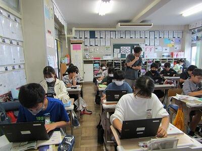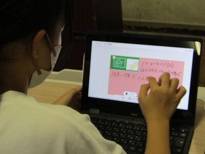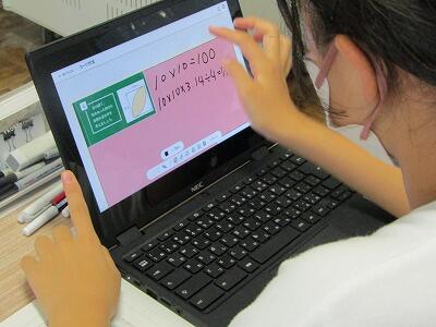 ローマ字入力で文字を打ち込んで説明する子もいれば、手書き文字の子もいます。