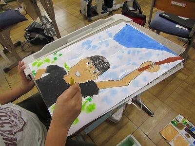 低学年は紙皿を使って、高学年はふうせんに紙を張り付けて作ります。