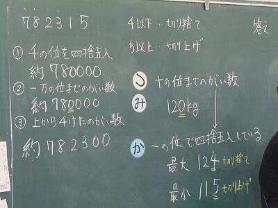 実生活でもよく使う、四捨五入や、切り上げ、切り捨てなど概数の学習を進めています。