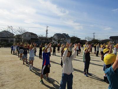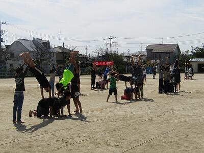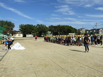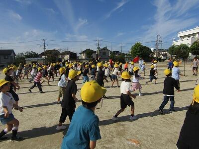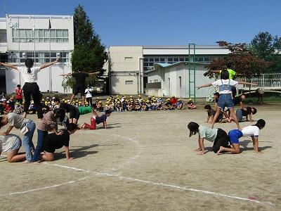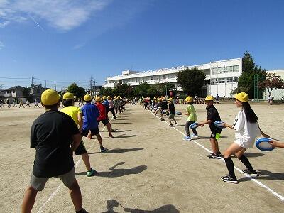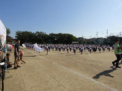 秋晴れの天気に恵まれ、校庭で全体練習を行うことができました。