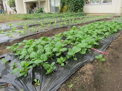 地域ボランティアの指導の下、2年生のこどもたちが種植えをした野菜も元気に芽を出しました。