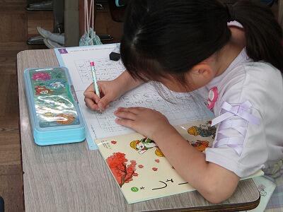 書き順や、折れ、払いなどこれまで気を付けて取り組んできたことに注意をしながら、一文字一文字丁寧に書いていました。