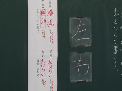 今日は書き順や字形に気を付けて「右」「左」の美しい書き方を練習しました。