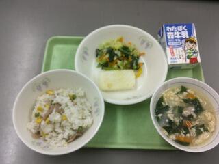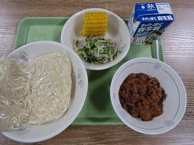 今日のメニューは、夏野菜のカレーライス、牛乳、コーンサラダ、セレクトデザートです。