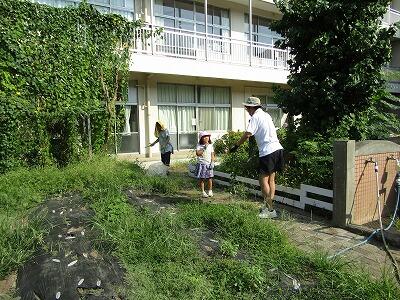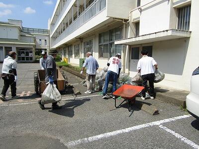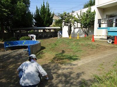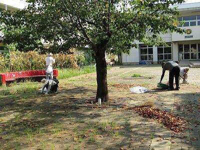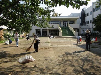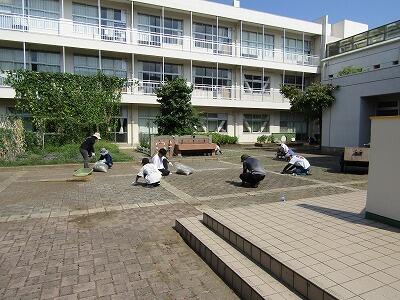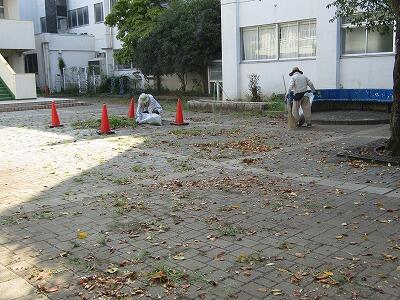 上蛭田地区自治会の皆様方が、昇降口前広場を中心に除草作業を下くださいました。