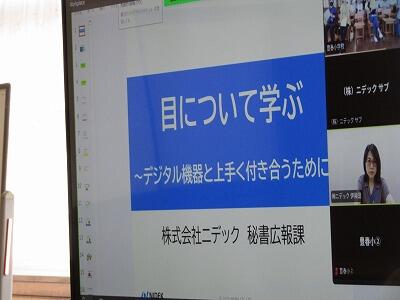 株式会社ニデック(NIDEK CO.LTD.)の方から「目について学ぶ ~デジタル機器と上手く付き合うために~」をテーマに、ご講演をいただきました。