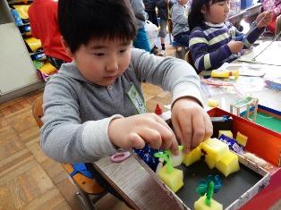1年生は図工の授業で、箱などを使って作品を制作しています。