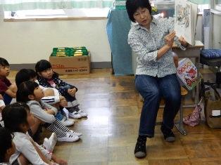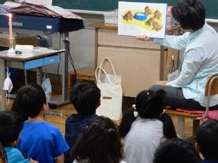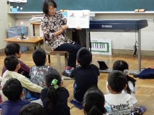 今日は、春日部おはなしの会の皆さんが、1年生と2年生の