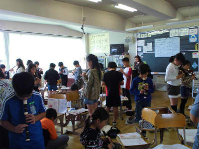 4年生が誕生生日を祝う曲を、リコーダーで演奏できるように練習中です。きれい音色が響きます。