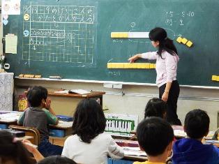 1年生は算数の授業です。13-9の計算の仕方を考えています。