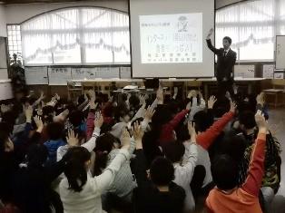 質問に子どもたちが挙手で答えています。結構な人数になります。