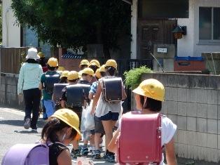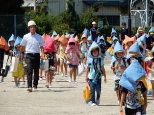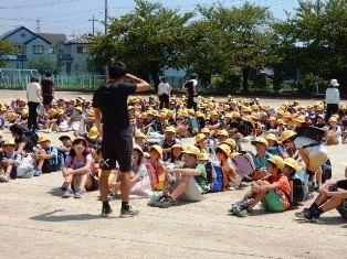 避難訓練の後、班に並び直して、一斉下校を行いました。