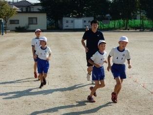 今学期に行われる持久走大会を目標に走っている子どもたちもいます。