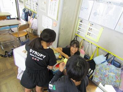 低学年は紙皿を使って、高学年はふうせんに紙を張り付けて作ります。