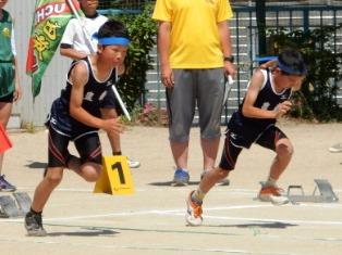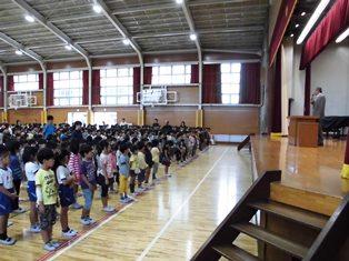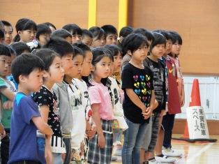 はじめに昨日の陸上競技大会の報告と代表児童が感謝の言葉を