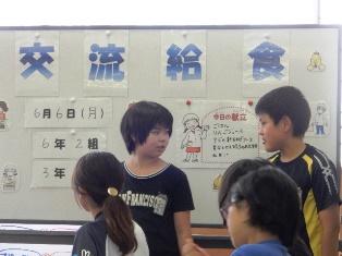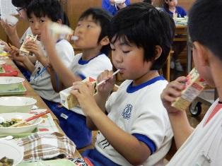 放送委員会の当番の子どもたちは、放送室で給食を食べます。