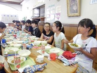 5年生は家庭科の授業で、班で話し合っているのは、野菜を