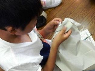 4年生は図工の授業で、「トントンつないで」で木を切ったりつないだり