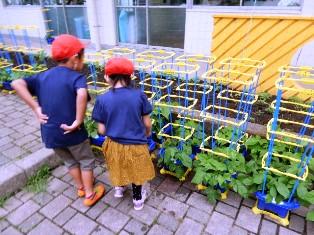 ずいぶん伸びてきたアサガオが気にる1年生です。